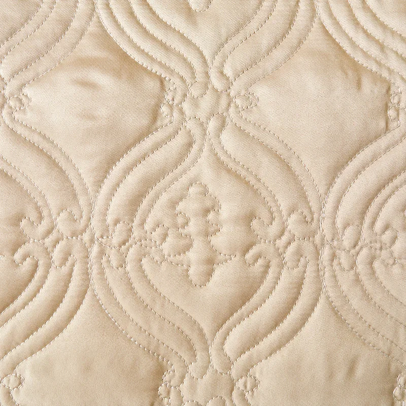 Couvre-lit En Satin Beige Champagne Jupe De Lit À Volants Brodée Avec Fermeture Éclair 3 Pièces pour un espace de détente ultime