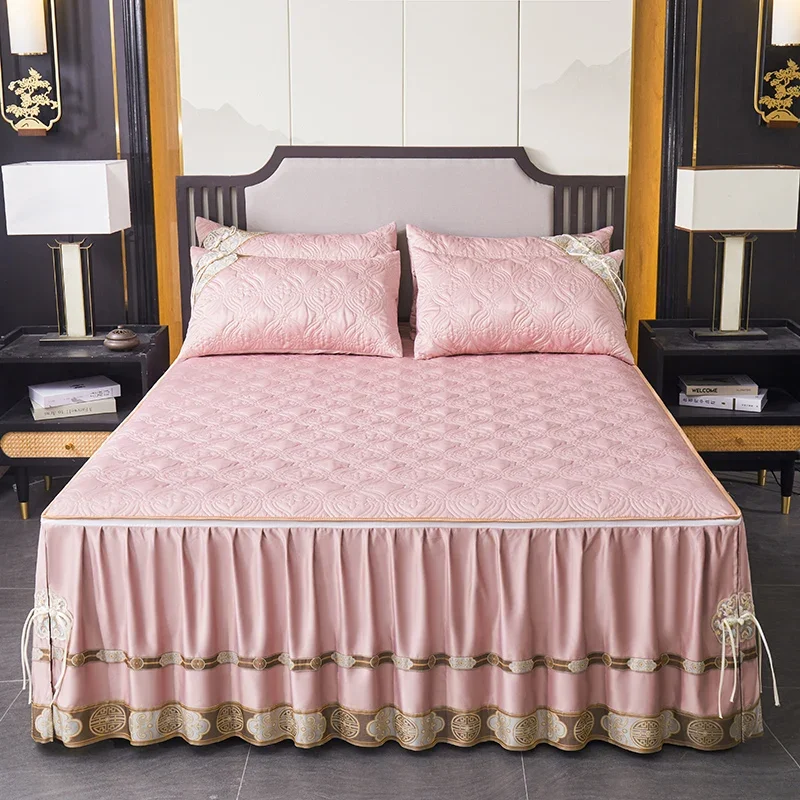 Imaginez-vous, chaque soir, accueillant la douceur incomparable du Couvre-lit En Satin Beige Champagne Jupe De Lit À Volants Brodée Avec Fermeture Éclair 3 Pièces. Cet ensemble conjugue esthétisme et fonctionnalité pour une décoration intérieure qui évoque luxe et sérénité.