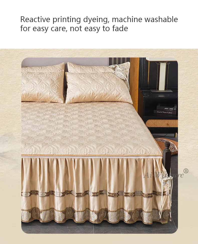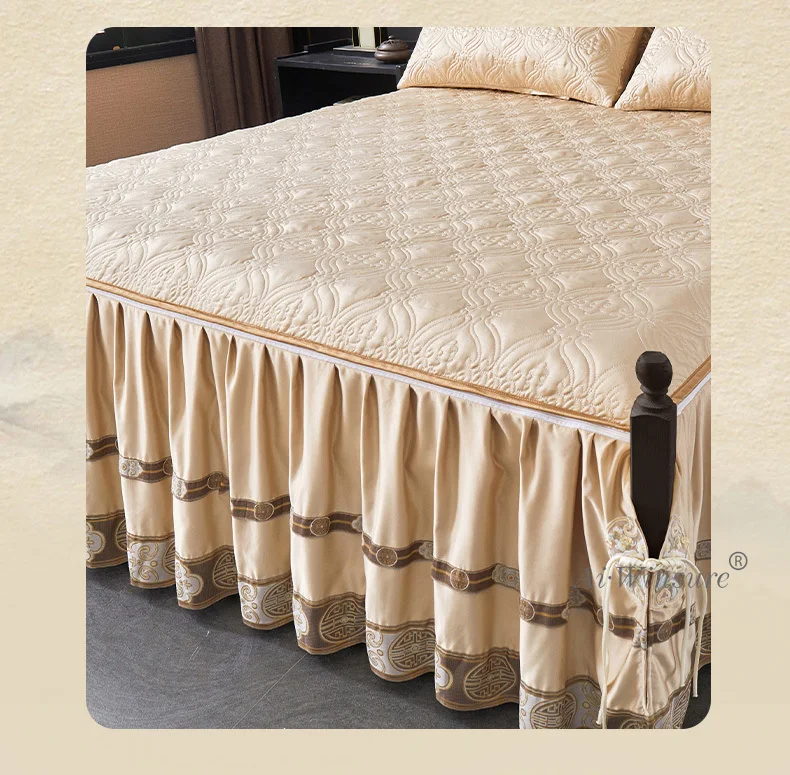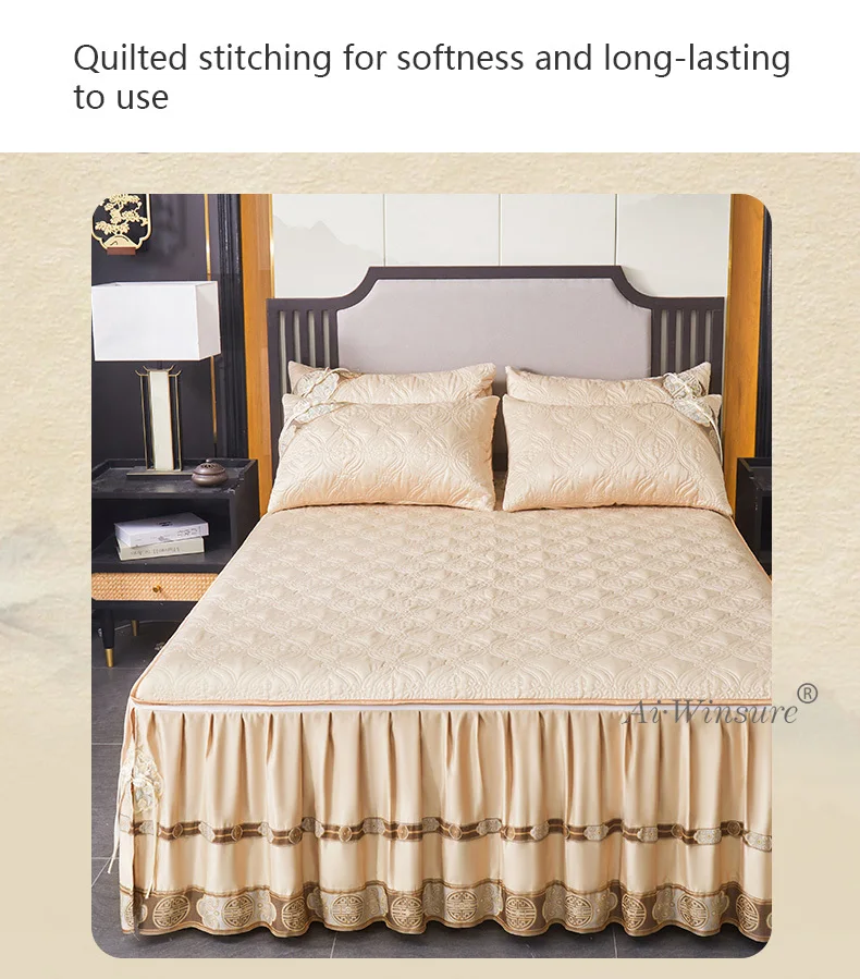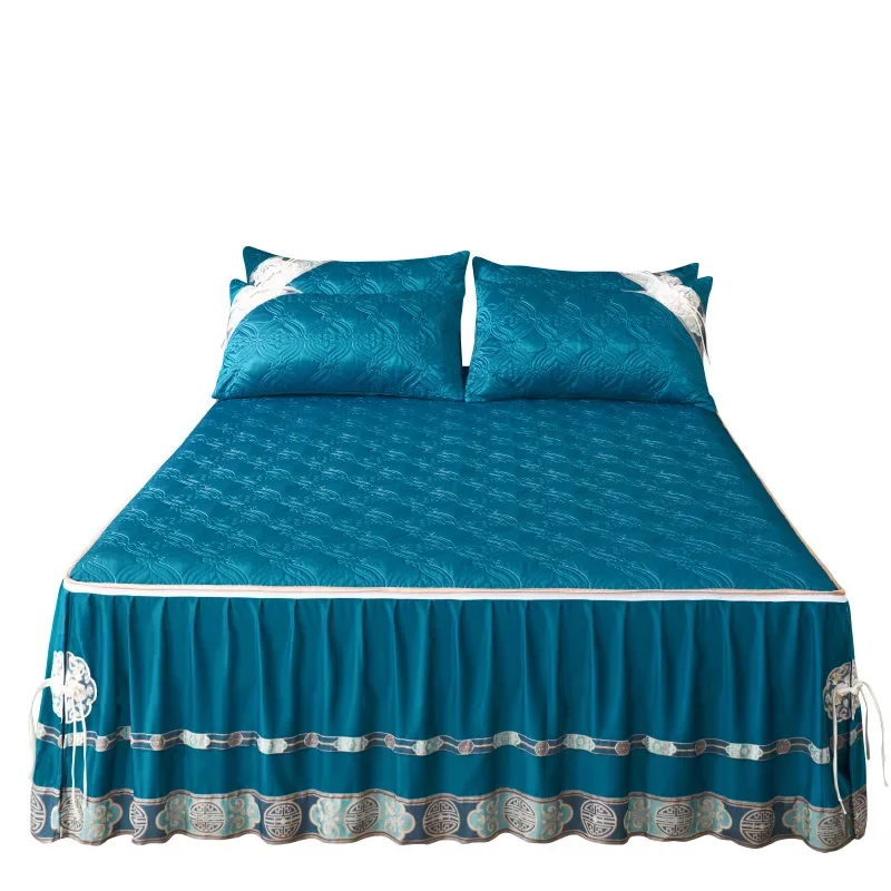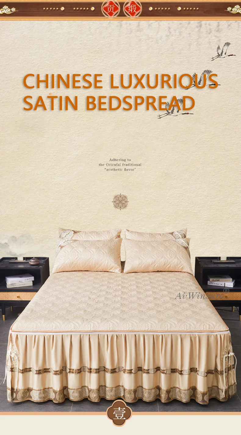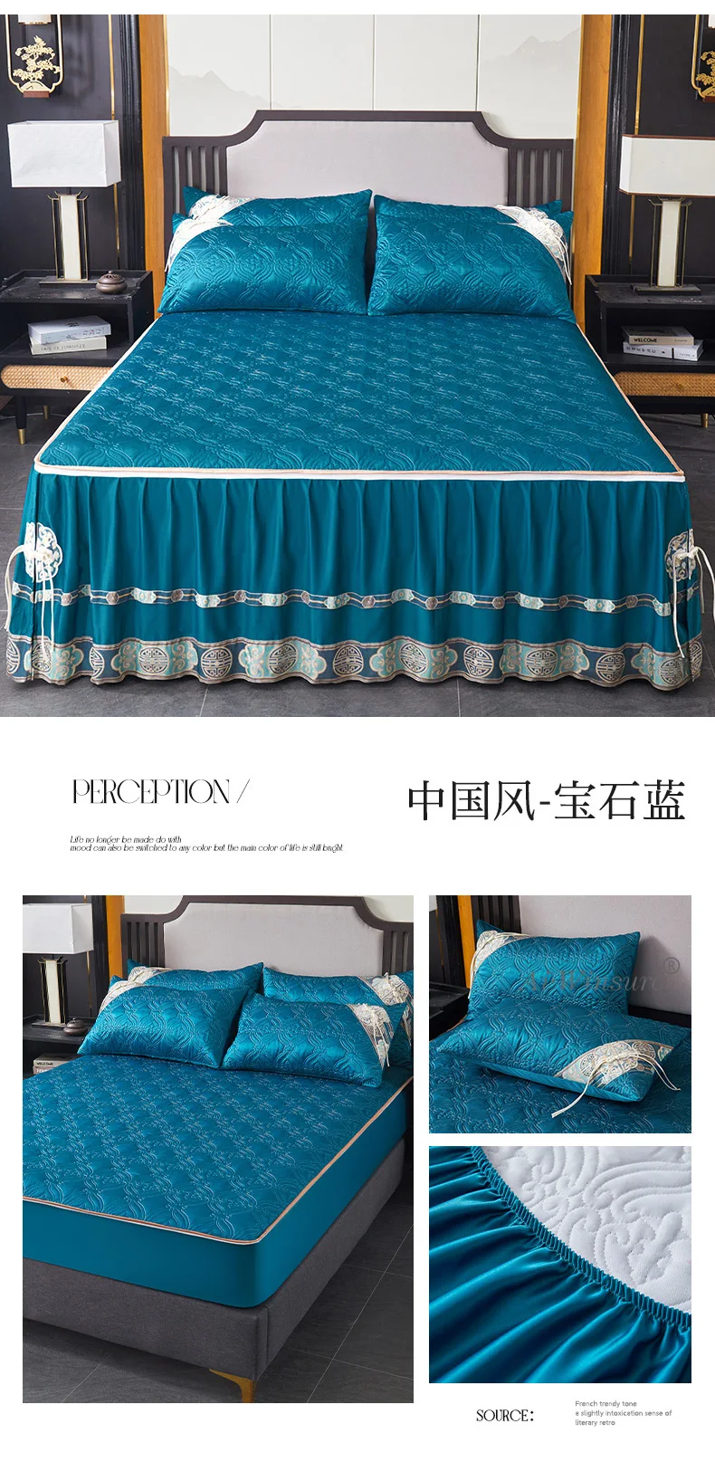 Pourquoi choisir notre Couvre-lit En Satin Bleu Roi Jupe De Lit À Volants Brodée Avec Fermeture Éclair 3 Pièces