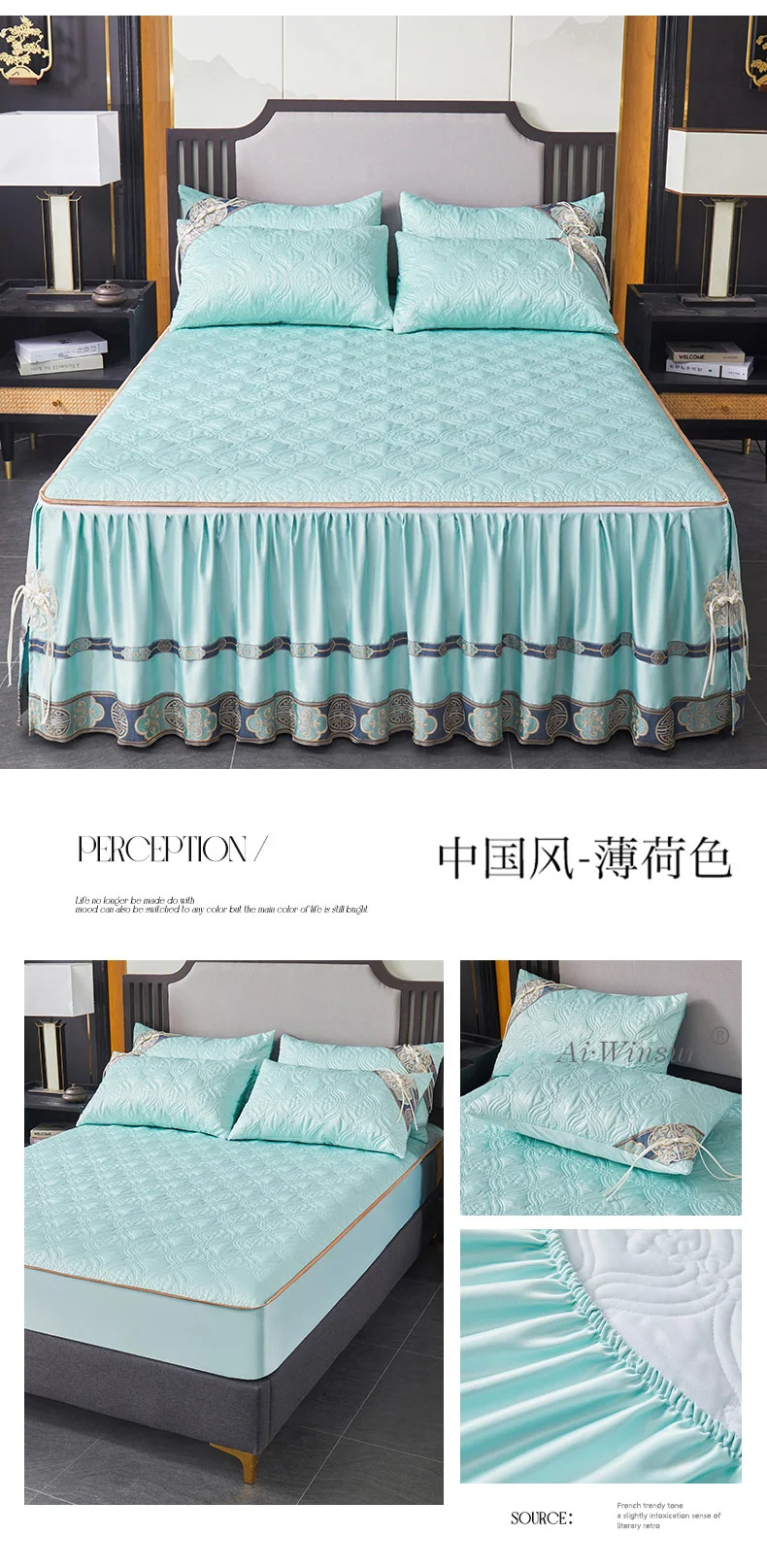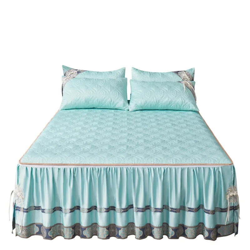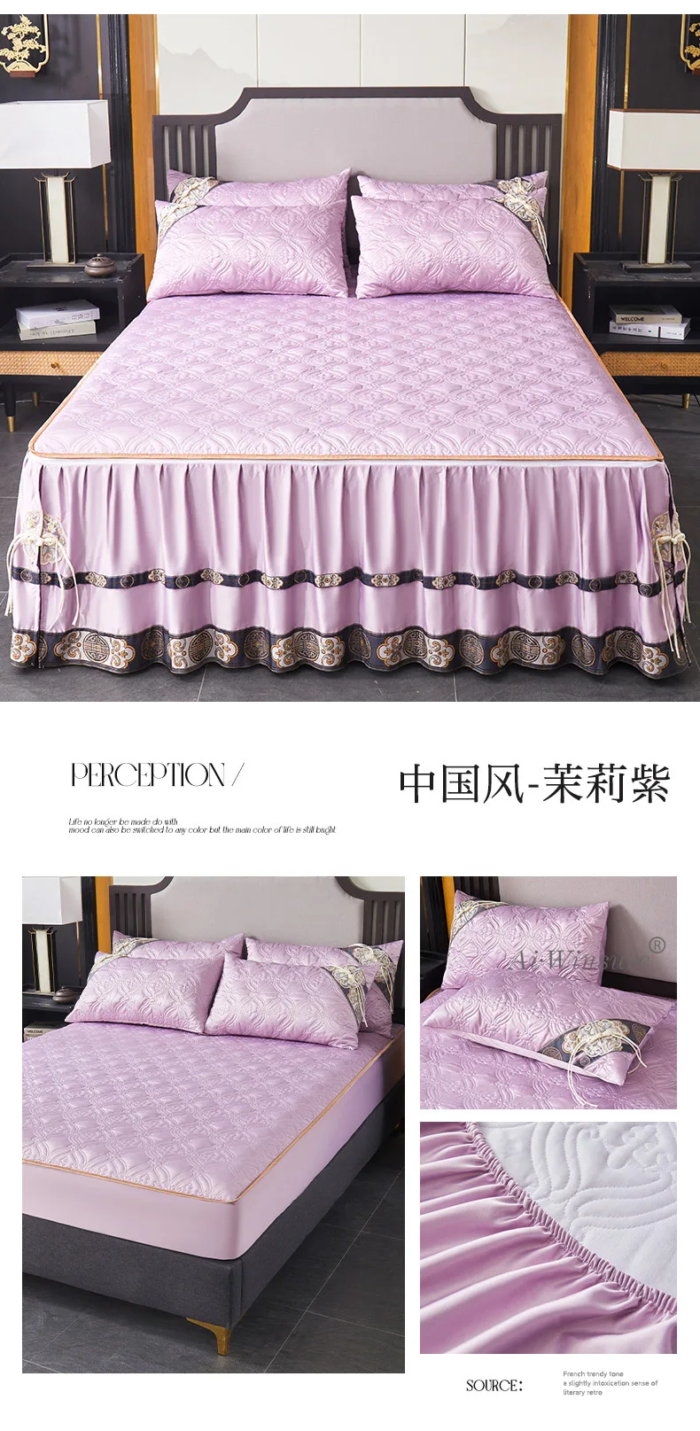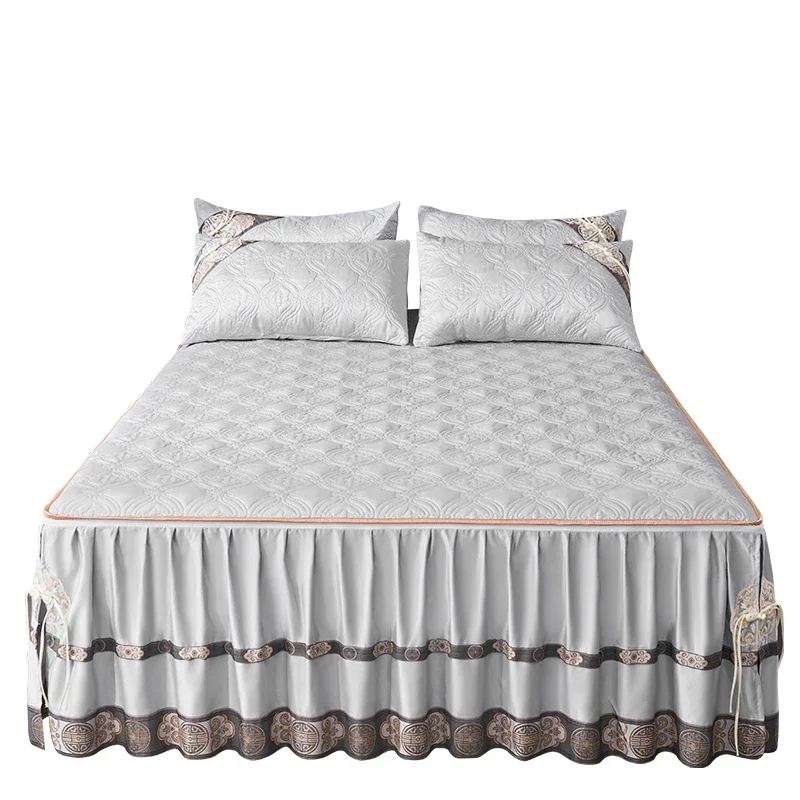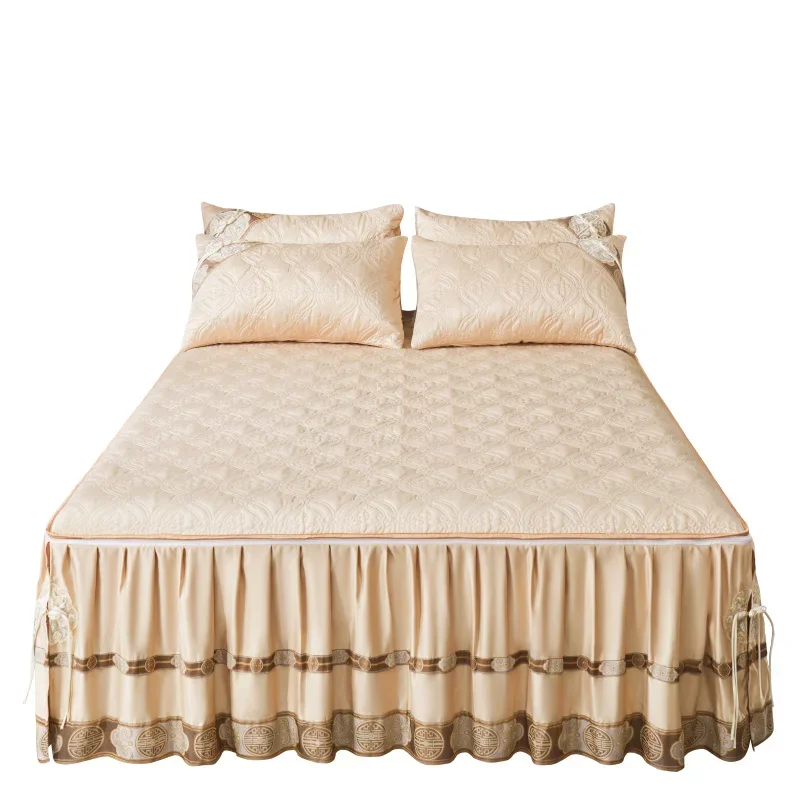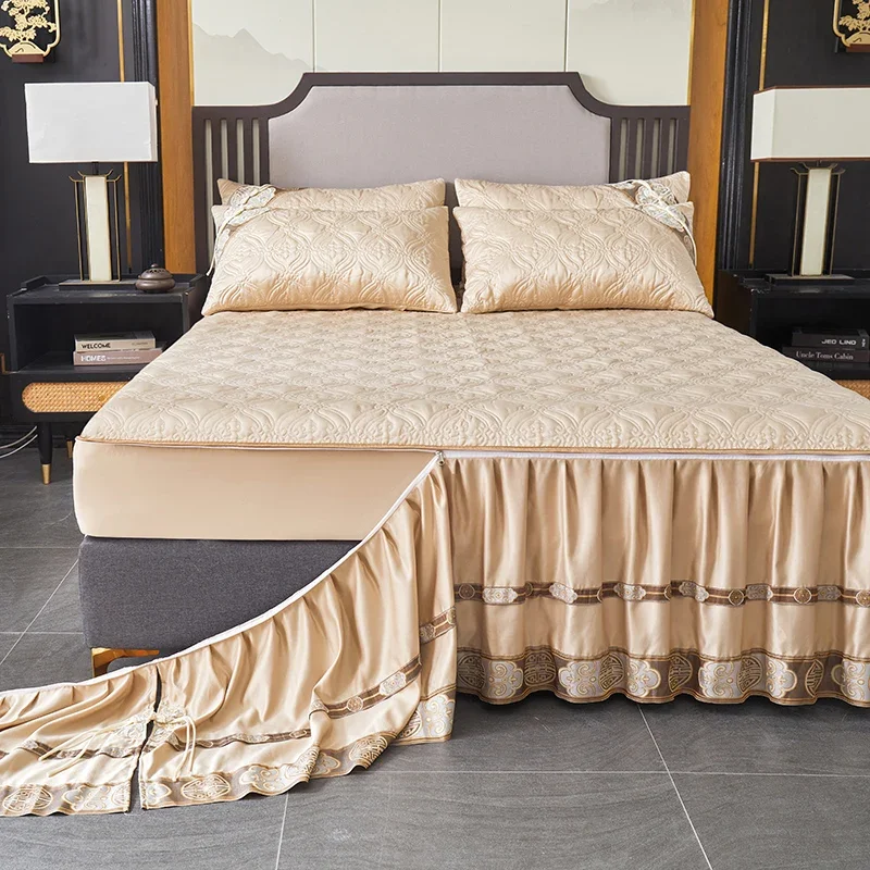 Pourquoi choisir notre Couvre-lit En Satin Bleu Roi Jupe De Lit À Volants Brodée Avec Fermeture Éclair 3 Pièces