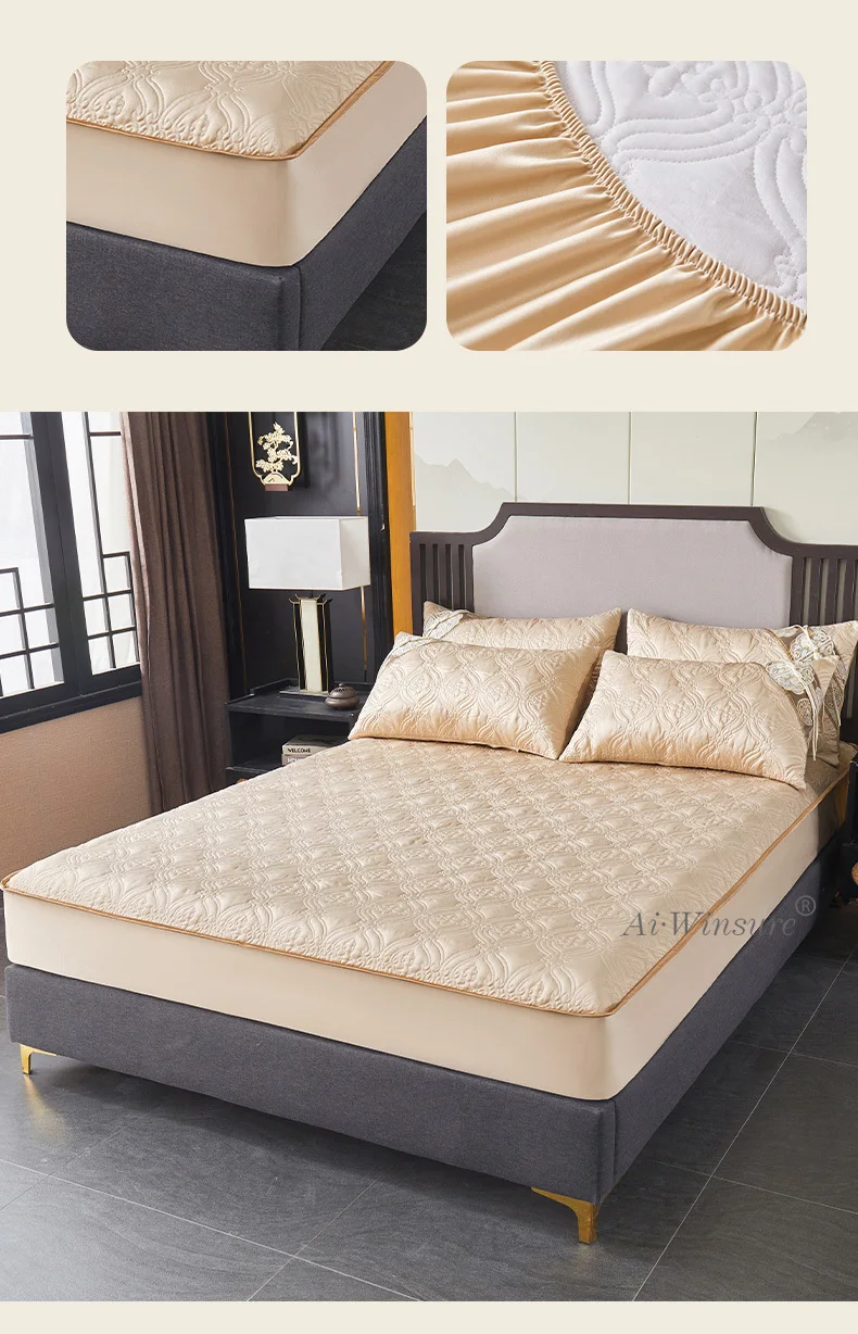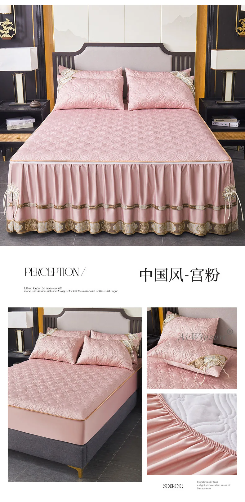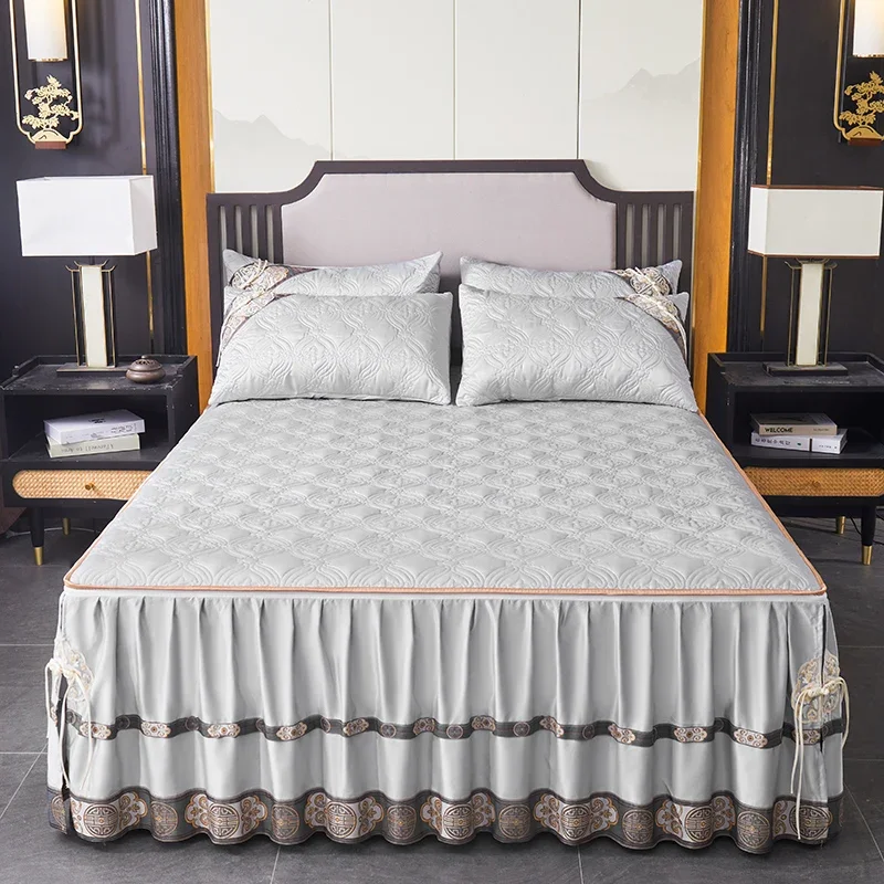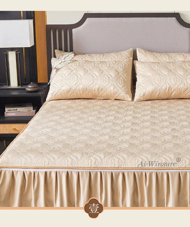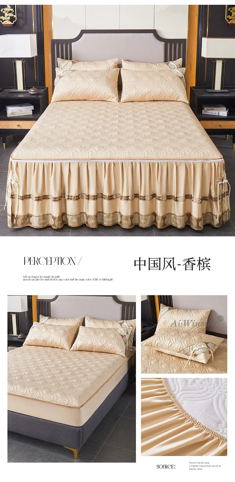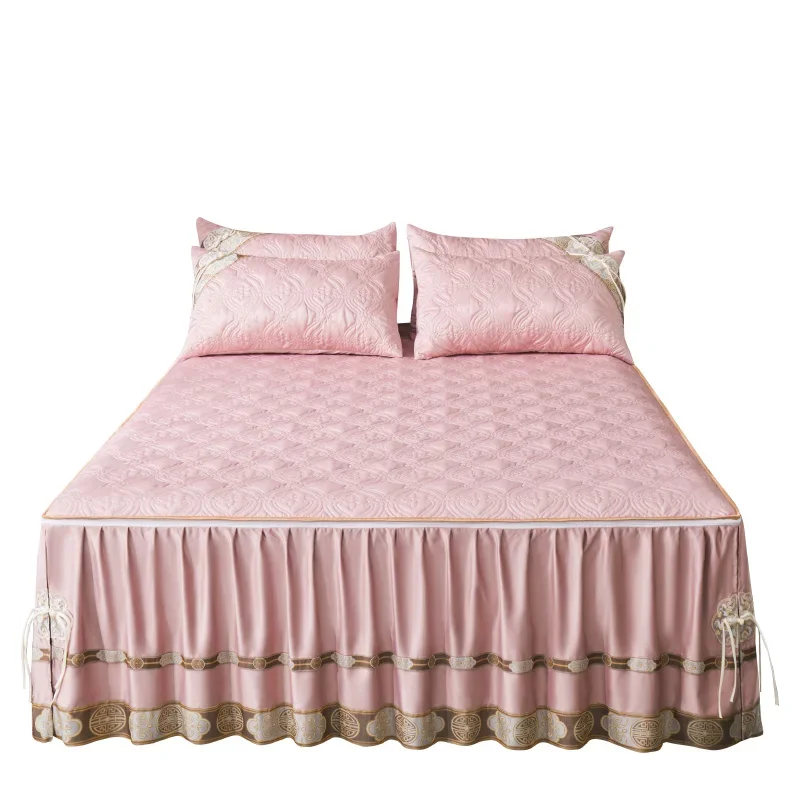 Pourquoi choisir notre Couvre-lit En Satin Bleu Roi Jupe De Lit À Volants Brodée Avec Fermeture Éclair 3 Pièces