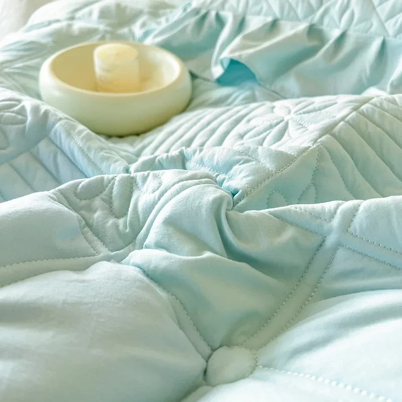 Transformez votre chambre avec le Couvre-lit Matelassé En Dentelle Élégante Bleu Clair 3 Pièces