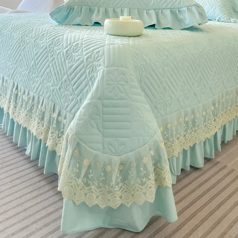 Invitez le Luxe Quotidien avec le Couvre-lit Matelassé En Dentelle Élégante Bleu Clair 3 Pièces