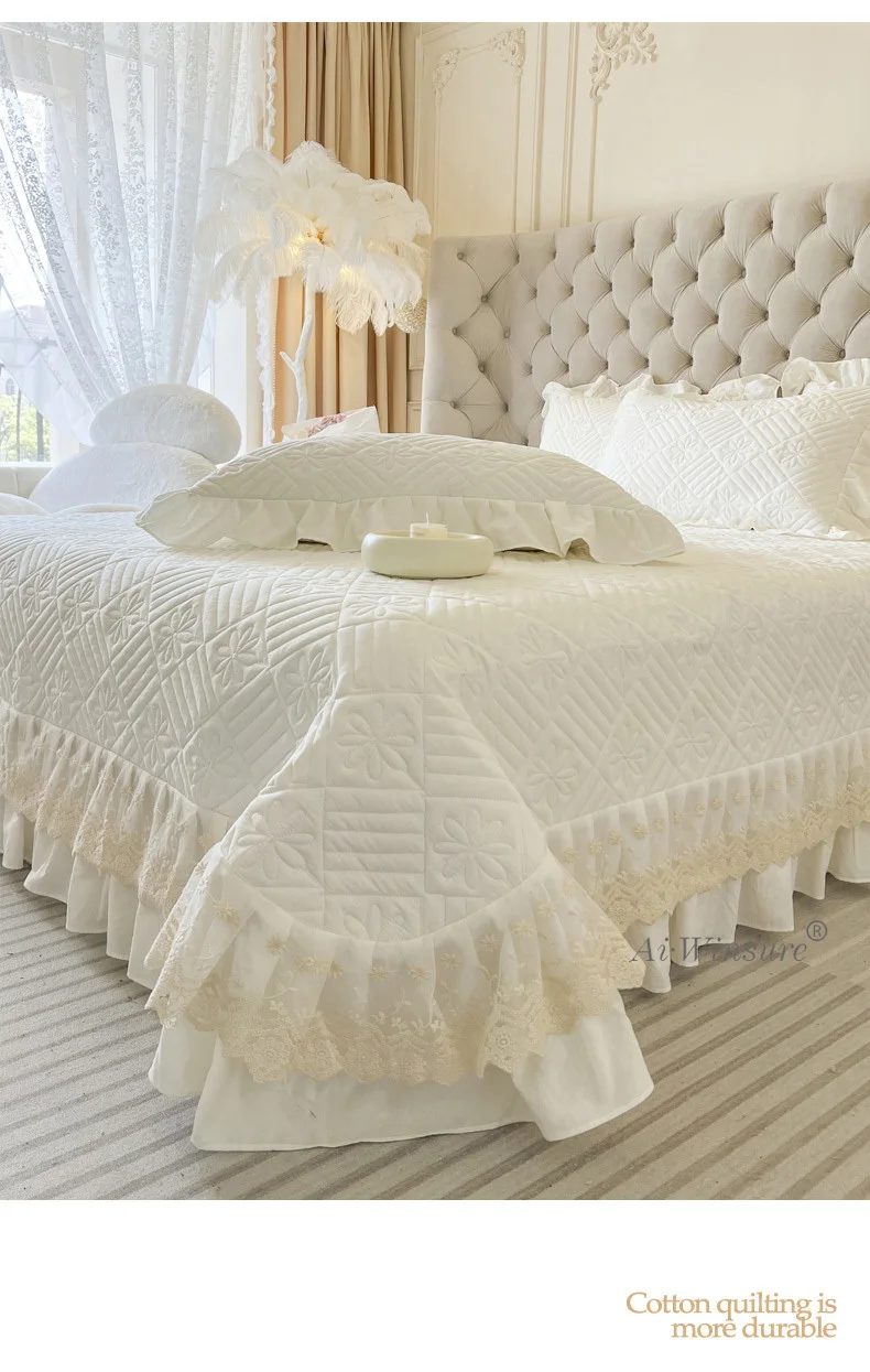 Rien n’égale le sentiment de s’enrouler dans un Couvre-lit Matelassé En Dentelle Élégante Bleu Clair 3 Pièces qui évoque le luxe et la sophistication. Ses motifs en dentelle élaborés ajoutent une dimension artistique à votre chambre, la transformant en sanctuaire personnel où chaque détail est soigneusement pensé pour charmer les sens. Élevez votre décor intérieur avec ce couvre-lit incomparable.