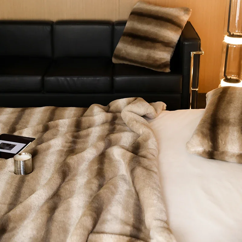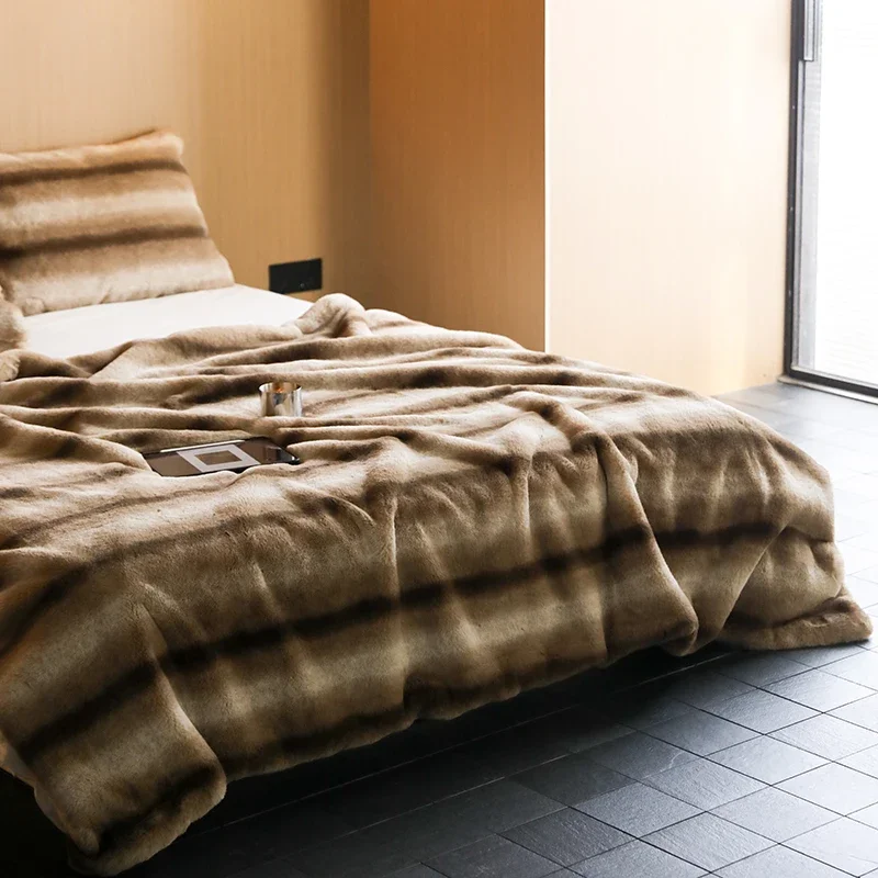 L’Essence du Luxe avec le Couvre-lit Polaire En Fausse Fourrure Beige Zèbre