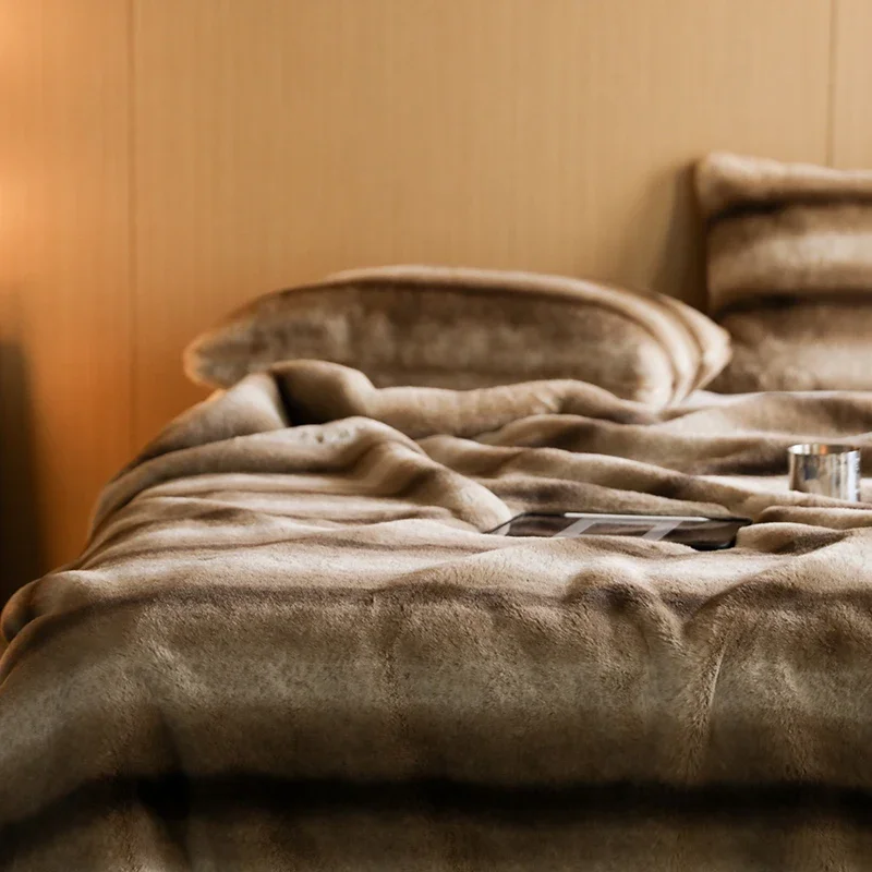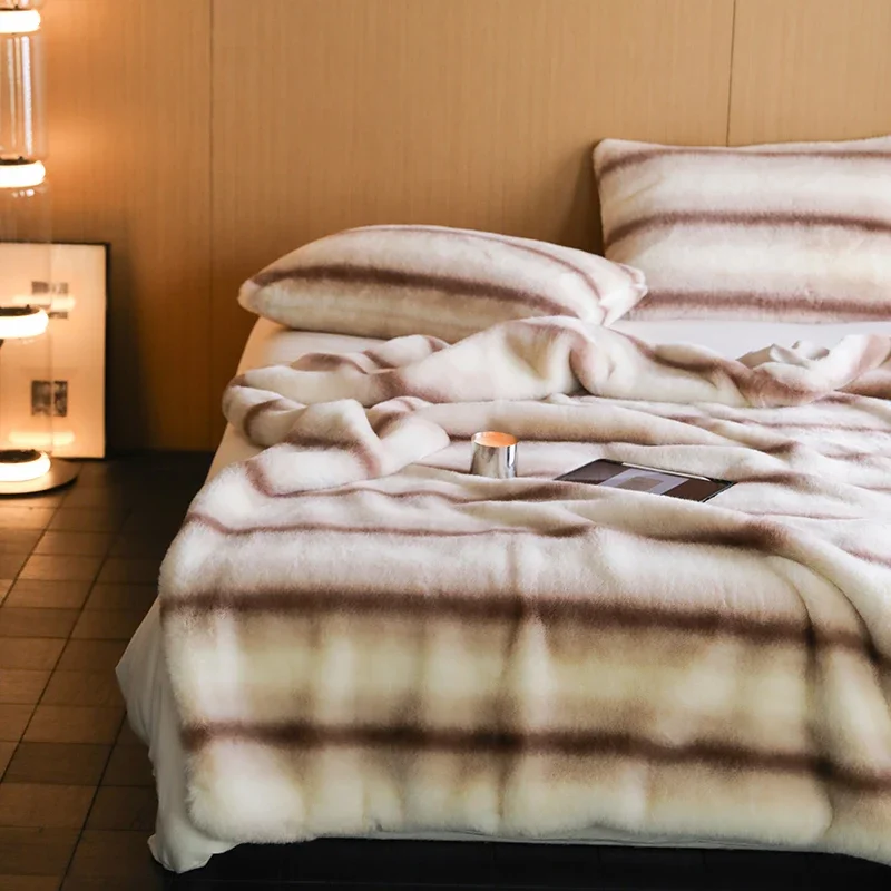 Créez une Ambiance Chaleureuse avec le Couvre-lit Polaire En Fausse Fourrure Beige Zèbre