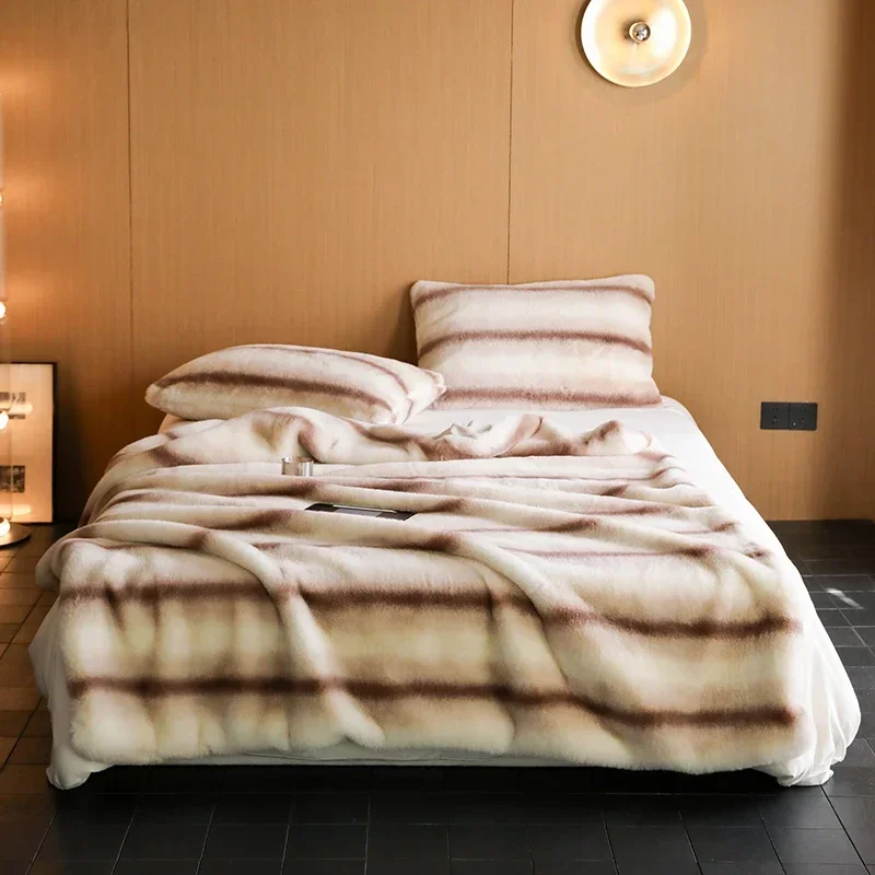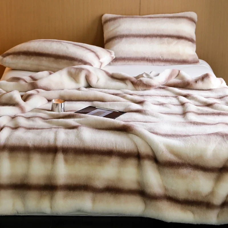 Couvre-lit Polaire En Fausse Fourrure Beige Zèbre : Un Atout de Charme