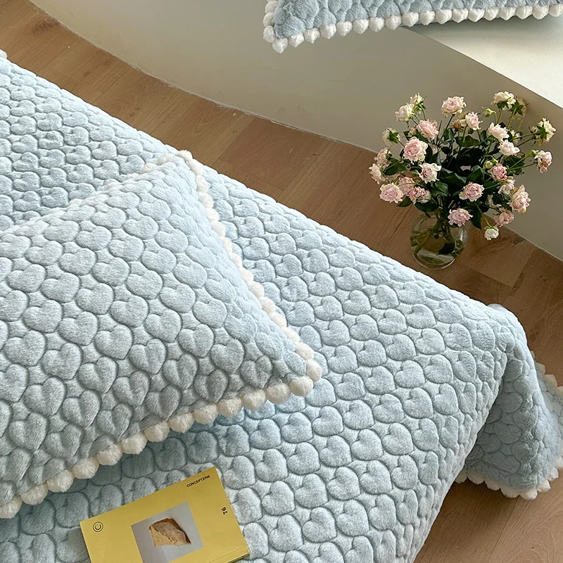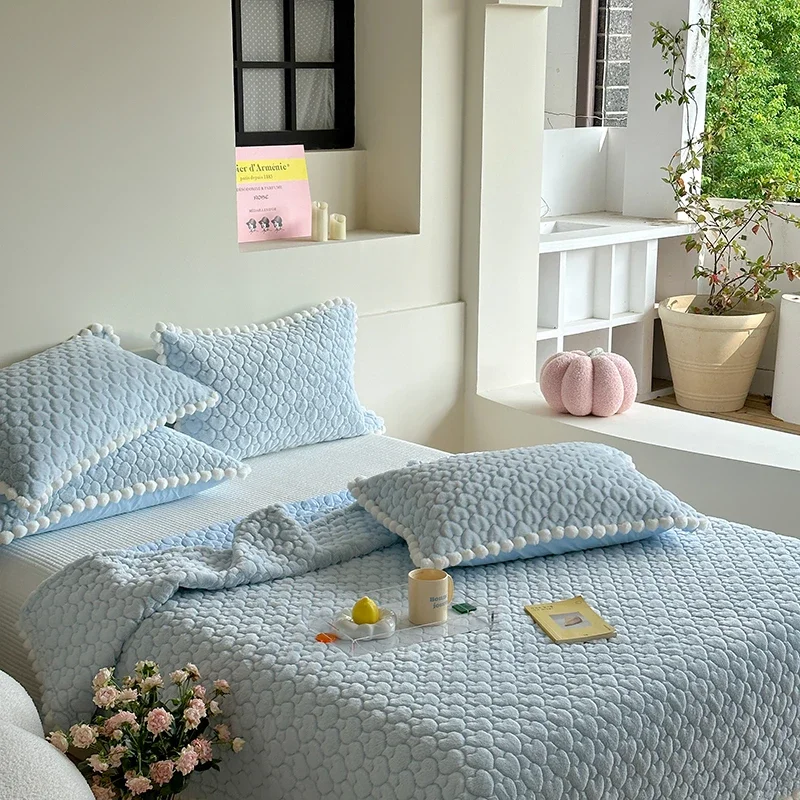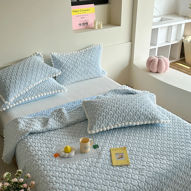 Couvre-lits Moderne Fausse Fourrure Bleu pour une chambre apaisante